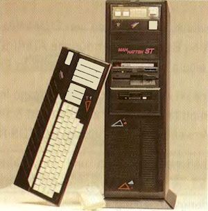 Die Meckenheimer Firma verpaßt dem ST als erstes neue Kleider in Form eines Tower-Gehäuses, so daß er sich äußerlich nicht mehr von einem modernen IBM-kompatiblen Gerät unterscheidet. An der Front befinden sich der Ein-/ Aus-, der Reset- und der Turboschalter. Zwischen den Schaltern sind drei Leuchtdioden mit der Aufschrift »H-DISK«, »TURBO« und »POWER« angebracht. Darunter steckt ein Schlüsselschalter, der jedoch noch ohne Funktion ist.