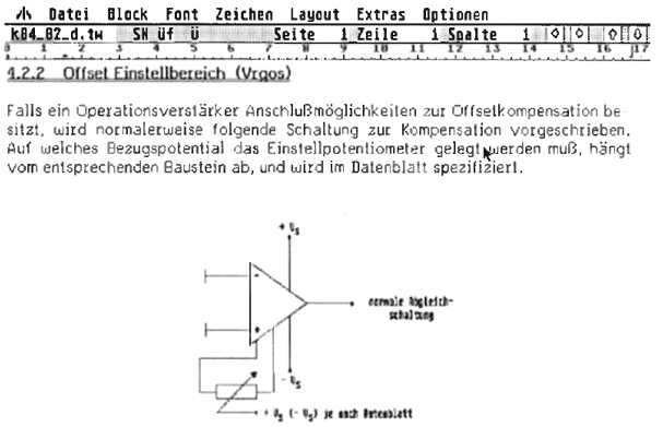 In Andreas Illings Büro entdecke ich mehrere prall gefüllte DIN-A4-Ordner. »Das sind unsere Dokumentationen«, beantwortet der Systembetreuer meinen fragenden Blick. »Sie entstehen fast zu 100 Prozent mit dem Atari ST. Lediglich einige Schaltbilder werden auf der Menthor-CAD-Anlage gezeichnet.« Wie entsteht eine Dokumentation? »Die Entwicklungsabteilung liefert mit dem fertigen Produkt eine Anleitung, Schaltbilder etc. ab. Die Abteilung Dokumentation bereitet die umfangreichen Manuskripte grammatikalisch und stilistisch auf. Mehrere feste und freie Mitarbeiter entwerfen die Grafiken, Diagramme und Schaltbilder mit 'Arabesque' und auf der CAD-Anlage. Meistens erledigt diese Arbeit ein Student, den ich schon sehr lange kenne. Anschließend geben die Sekretärinnen die Texte mit That's Write ein, fügen die Abbildungen hinzu und drucken das Dokument aus. Dann fügen Sie noch eventuelle Korrekturen ein. Auf dem SLM804-Laserdrucker entsteht ein Kopier-Original, das wir mit einem Hochleistungskopierer vervielfältigen. Das Computerdokument wird komprimiert und auf Festplatte archiviert.« Bis heute lieferte Illings Abteilung Dokumentation ca. 15 DIN-A4-Ordner ab.