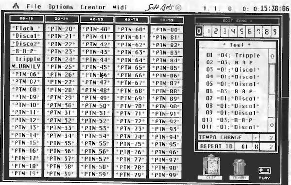 Ein Editor macht, wie jeder weiß, die Programmierung eines solchen Instruments zur reinen Freude. Erste (positive) Überraschung: Im gewohnten Soft Arts Ringbuch findet sich neben der Diskette und einer 35seitigen Anleitung ein Teebeutel als freundliche Beigabe. Zweite (negative) Überraschung: Nach einer Ladezeit, in der sich mühelos eine ganze Teeplantage vertrinken ließe, verabschiedet sich das Programm ohne weiteren Kommentar mit einem Reset. Oha, ein Problemkind? Die Rechner-Konfiguration (Mega 2, SH205, original TOS 1.4 im ROM und Mortimer im Auto-Ordner) hatte bisher noch keine Schwierigkeiten bereitet. Also Mortimer ade und siehe da, es läuft. Zu dumm, daß sich keiner an Programmierrichtlinien hält.