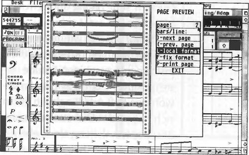 Die »Page Preview«-Funktion stellt eine komplette Seite der Partitur vor dem Ausdruck auf dem Bildschirm dar