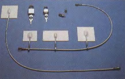Wer um seine wertvolle Computeranlage fürchtet, legt die Geräte mit dem »Uni-Kit« der Firma IC-Intracom an die Kette. Dazu befestigen Sie selbstklebende Metallplatten an den Gerätewänden und beispielsweise am Schreibtisch. Anschließend verbinden Sie die Platten durch ein Stahlkabel und sichern dieses mit einem Steckschloß. Als Ergänzung bietet IC-Intracom auch Metall platten zum Festschrauben an. An weiteren Sicherungssystemen stehen u. a. ein Schloß für den Ein-/Ausschalter und eine Netzeingangssicherung für Netzwerke mit BNC-Steckverbind ungen bereit.