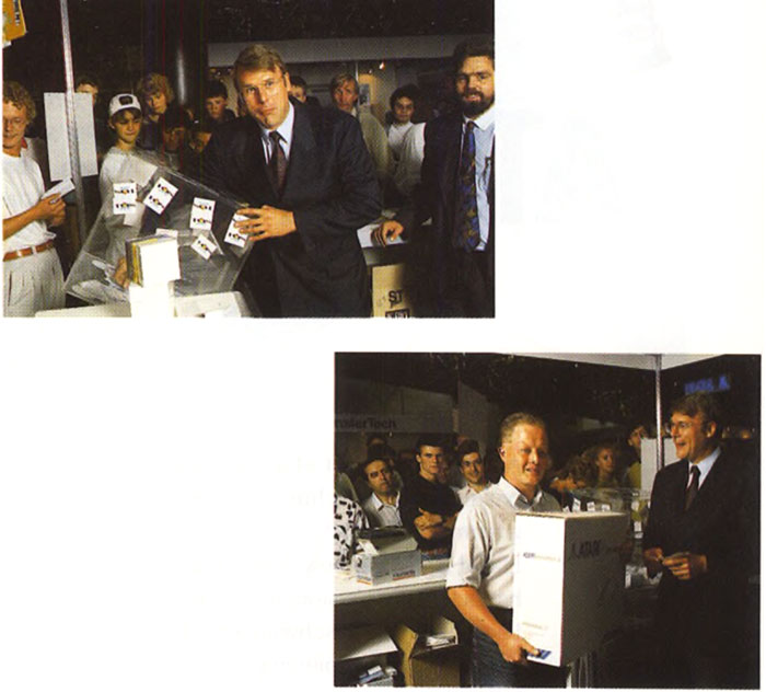 Atari-Geschäftsführer Alwin Stumpf als Glücksfee beim TOS-Gewinnspiel