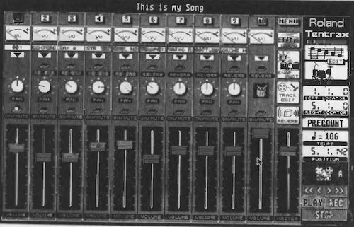 Waren das noch Nächte, in denen man stundenlang im Studio saß und an zahllosen Reglern und Potis »schraubte«, um den Traumsound zu finden. Vorbei die Zeiten, als das geheimnisvolle Glühen der LEDs und VU-Meter den musikalischen Geist stimulierten. Seit MIDI muß sich der Musiker mit nackten Zahlenkolonnen herumschlagen. Doch »Tentrax«, das Sequenzerherz des neuen Desk-top Music Systems von Roland, läßt jetzt Hoffnung aufkommen.