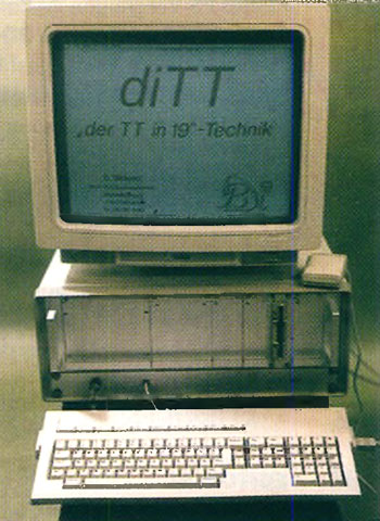 Die Firma Dickers Meß- und Steuerungstechnik bietet den Atari TT im robusten Schroff-Comptec 19-Zoll-Gehäuse (vier Höheneinheiten) an. Alle Schnittstellen sind an der Rückwand herausgeführt, das Einschalten und das Zurücksetzen per Reset erfolgt durch einen Schlüsselschalter an der Vorderseite. Der Monitor darf auf dem Gehäuse stehen. Der Basispreis für den Rack-TT mit 4 MByte RAM ohne Monitor beträgt 4800 Mark, VME-Bus-Rückwand, stärkere Netzteile etc. kosten extra.