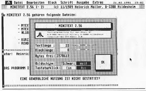 Eine leistungsstarke und dennoch einfach zu bedienende Textverarbeitung legt Heinrich Möller mit seinem »Minitext 2.5« vor. Er hat das Programm in GFA-Basic 3.0 entwickelt und anschließend com-piliert, was die erfreulich hohe Arbeitsgeschwindigkeit keineswegs beeinträchtigt.
