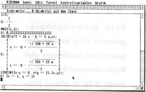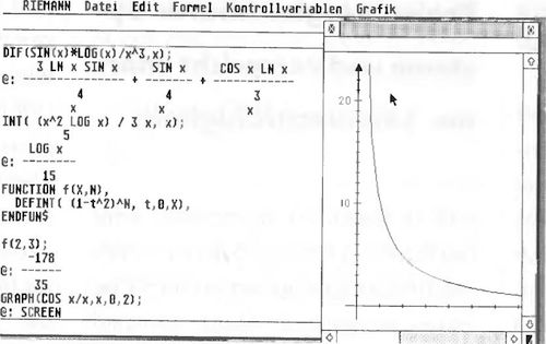Bild 1. Das Programm Riemann II arbeitet normalerweise symbolisch und beherrscht dabei alle elementaren Funktionen