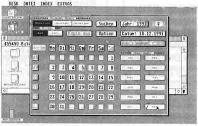 Ab und zu brauchen Sie, beispielsweise für eine Verabredung, eine Adresse. Deshalb hat das Programm eine Funktion zum Importieren entsprechender Daten. Das Programm bietet acht Datenfelder. Da in den meisten Adressdateien jedoch wesentlich mehr Informationen gespeichert sind, muß man vorher ein »Offset« definieren. Das heißt, Sie wählen aus, welcher Inhalt zu welchem Feld gehört. Dazu dient das externe »Datehelp«-Programm. In diesem nützlichen Zusatz-Utility nehmen Sie auch noch andere Einstellungen vor. So gibt man dort Termine ein, die sich das ganze Jahr wiederholen. Wenn Sie zum Beispiel Ihre Umsatzsteuervoranmeldung an jedem 15. eines Monats erledigen wollen und der 15. auf einen Sonntag fällt, verschiebt das Programm den Termin auch wahlweise auf den Freitag oder Montag. Date-Access läuft als Accessory oder Programm und ist mit Tastatur und Maus komfortabel zu bedienen. In der aktuellen Version erscheint es noch nicht ganz ausgereift, so fehlt z.B. eine automatische Terminüberwachung. Für das kommende Frühjahr ist allerdings ein großes Update angekündigt. Zur Zeit empfiehlt sich Date-Access für Anwender mit wenig Terminen oder als Einstieg, denn die angekündigten Features des Updates schieben den Leistungsumfang ein ganzes Stück nach oben.