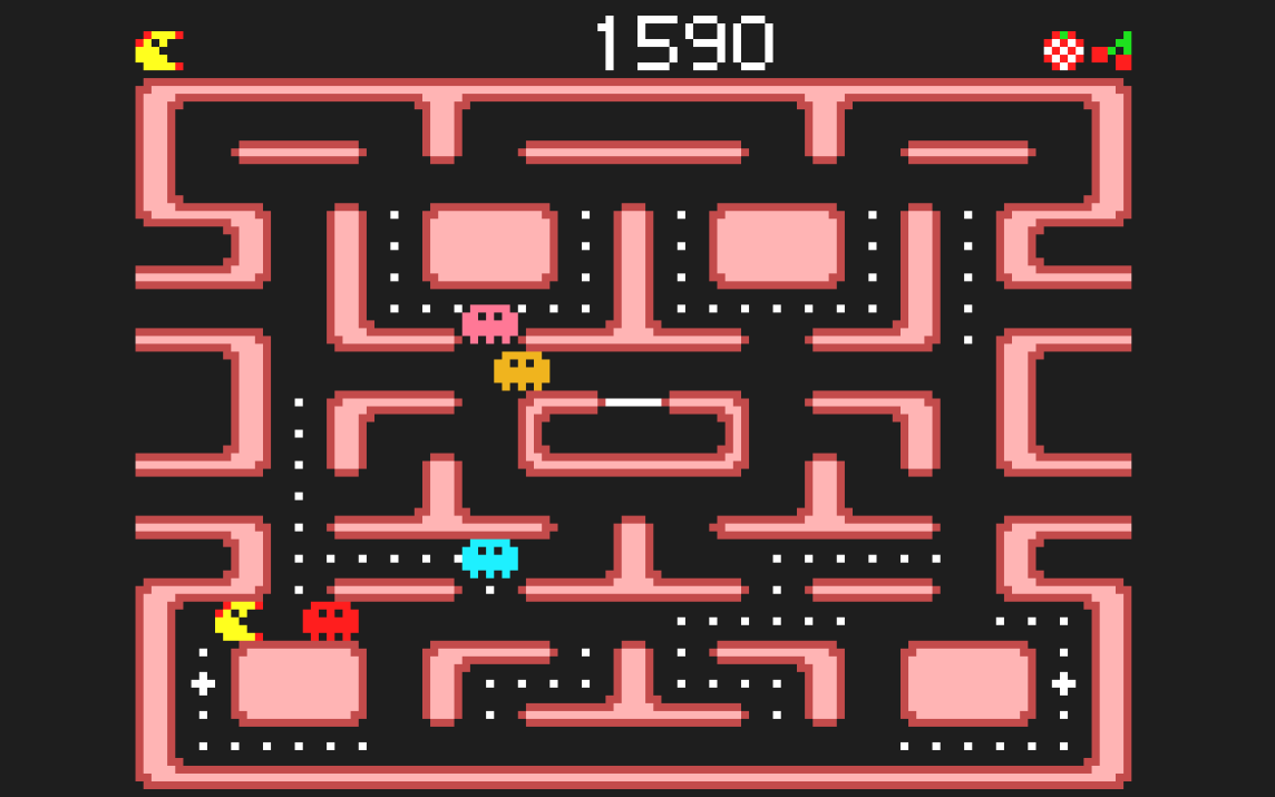Eines der ersten Spiele auf Heimcomputern und in den Automaten der Spielhallen war »Pac-Man«. Sie steuern bei diesem Spiel eine kleine Kugel durch verschiedene Labyrinthe und müssen dabei Pillen oder Früchte aufsammeln. Dabei versuchen jedoch vier schlimme Geister, Sie zu fressen.
