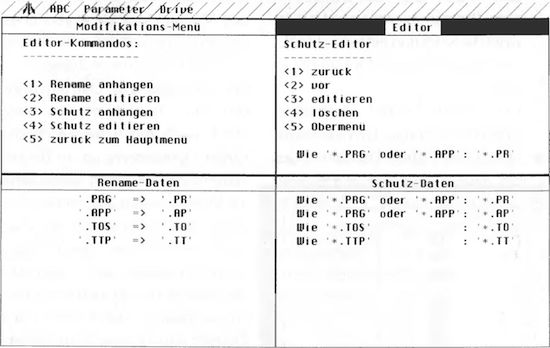 Tut man dies eigenhändig, verweigert das Betriebssystem anschließend die weitere Zusammenarbeit mit den veränderten Programmen. Das TOS ist nicht darauf vorbereitet, ein Programm zu starten, dessen Extension »PRX« oder »PRO« lautet. Beim Anklicken erscheint lediglich die bekannte Alertbox mit dem Text »Diese Datei kann nur gedruckt oder angezeigt werden«. ABC ändert darum auch die Desktop.Inf-Datei entsprechend, so daß das Betriebssystem die behandelten Programme als ausführbar erkennt und nach dem Doppelklick startet.