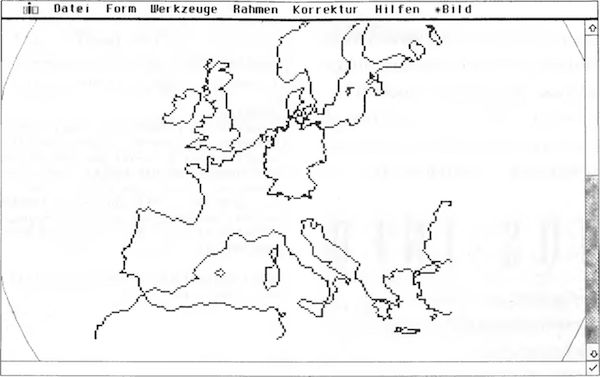 Ein Programmpaket mit den Programmteilen Editor, Zeichenteil (mit Vektor- und Pixelgrafik), Länderumrissen, Funktionsgraphen und Dateiverwaltung verbirgt sich hinter dem Namen »Einstieg«. Für Einsteiger in die Welt des Atari ST und für Neulinge im Umgang mit dem Computer ist das Programm gedacht, sowie für den Einsatz in der informationstechnischen Grundbildung. Eine Vielzahl an Funktionen lauern in dem Programm und sollen zum Forschen im Umgang mit dem Atari ST anregen. So lassen sich in den etwas langsam geratenen Zeichenteil Karten laden oder Klimadiagramme anfertigen. Sicherlich eine für Erdkundelehrer angenehme Seite des Programmes. Als Einstiegshilfe stellt das Programm die Zeichenfunktion jeweils beim Aufruf durch den Mauszeiger dar (vgl. Bild 5 und 6).
