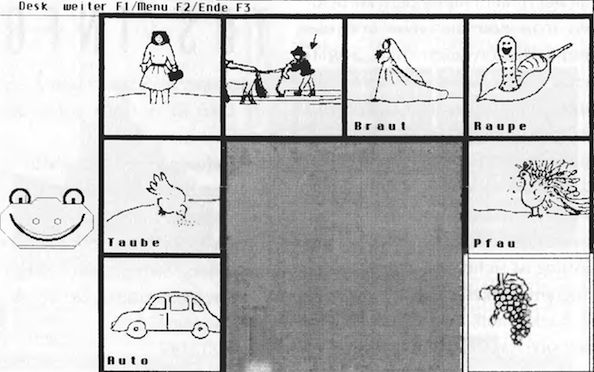 Die dritte Anwendungsmöglichkeit dieses Programmes finden Sie in der Stempelfunktion. Man entwirft sich eigene Stempel auf einem Stempeleditor, ruft dann mit < F10 > den Stempel auf und verwendet ihn im eigenen Bild. Diese Möglichkeiten mit dem Computer umzugehen, kennt das Kind auch schon vom Kindergarten: malen, stempeln und Puzzle lösen. Damit ist das Programm eine schöne Gelegenheit für Kinder, den hauseigenen Computer zu erforschen (vgl. Bild 1).