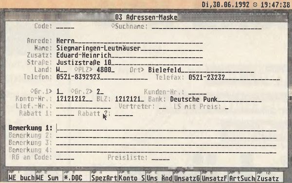 Bild 1. Die Adreßmaske füllt fast den gesamten Bildschirm und nimmt alle Angaben auf