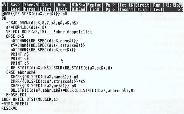 Das Archiv »Listings« enthält die Quelltexte der Rubrik »Tips und Tricks für GFA-Basic«. Dort beschäftigen wir uns mit einer Passwortabfrage, dem Nach laden von »*.INF«-Dateien und der Speicherorganisierung von GFA-Basic. Außerdem verraten wir ein Verfahren zur Simulation eines Tastendrucks.