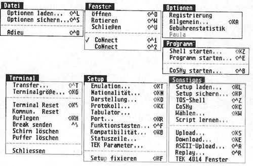 CoNnect arbeitet auflösungsunabhängig und ist multitaskingfähig. So läßt sich in jedem Terminalfenster eine TOS-Shell starten. Unter MiNT und MultiTOS entwickelt sich CoNnect sogar zur grafischen Benutzeroberfläche für den Multitaskingbetrieb. Auf Wunsch zeigt das Programm im Terminalfenster auch einige Statusanzeigen an. Als besonders nützlich erweist sich hier eine Online-Uhr und ein automatischer Cebührenzähler.