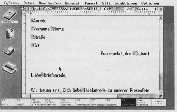 Bild 5 zeigt, wie der Kopf des Serienbriefes anschließend aussehen könnte. Wenn Sie den Serienbrief drucken wollen, vergessen Sie nicht, im Druckmenü den Punkt »Serienbrief« anzuklicken. Sie verwenden entweder alle Adressensätze oder wählen jeweils einen einzelnen aus. Das ist in der Dialogbox »Serienbriefe« (vgl. Bild 2) möglich unter dem Dialog »Exportdatei«. Nach einem Klick auf die Nummer des Datensatzes zeigt CyPress den entsprechende Datensatz. Durch Anklicken der Pfeile wählt man den vorherigen oder den folgenden Datensatz aus und fertig ist der Serienbrief-Zauber. (wk)