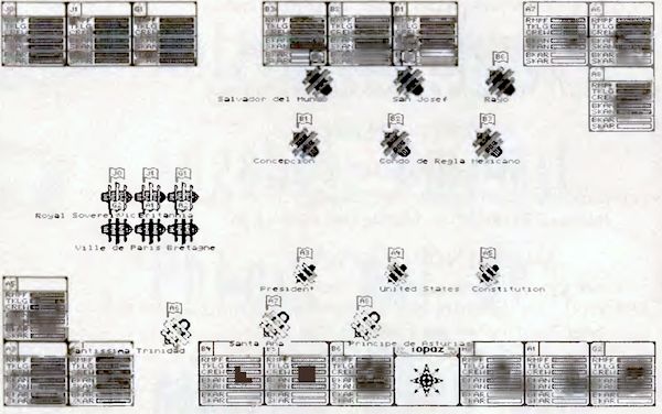 Zu Beginn einer Seeschlacht verteilen sich zunächst die Schiffe auf dem Bildschirm. Ihre Schiffe steuern Sie während der Schlacht mit dem Joystick. Haben Sie einen zweiten Atari, der über die MIDI-Ports mit dem Spielecomputer verbunden ist, so fungiert dieser als Statusbildschirm, auf dem die Zustände der einzelnen Schiffe erscheinen.