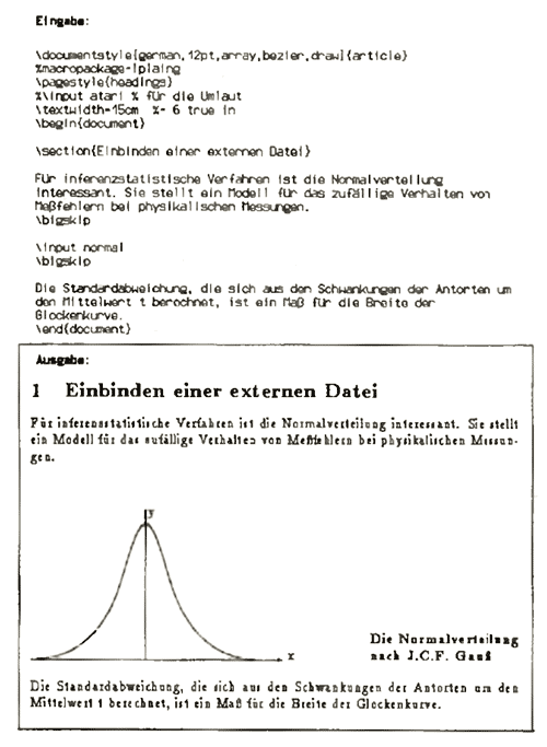 Ein Beispiel soll das Ganze etwas näher bringen. Die in Bild 4 präsentierte Normalverteilung ist eine unabhängige Datei, die über \input < normal > mit dem Haupttext verknüpft wird.