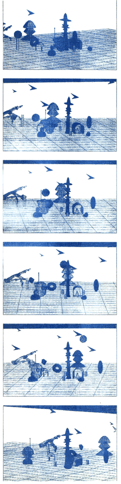 Die Bildfolge zeigt sechs der insgesamt 78 Einzelbilder, die als Vorlage für das Animations-Hologramm dienten, das Sie auf der nächsten Seite sehen