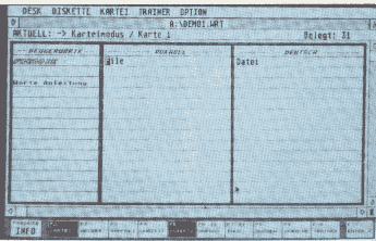 Hinter dieser Bezeichnung verbirgt sich ein Vokabeltrainer besonderer Art, der schon durch seinen Preis von nur 39 DM (Demodisk 7 DM) auffällt. Das Programm wurde weitgehend in GFA-Basic erstellt und kompiliert, was ein weiterer Beweis für die Leistungsfähigkeit dieser Programmiersprache ist.