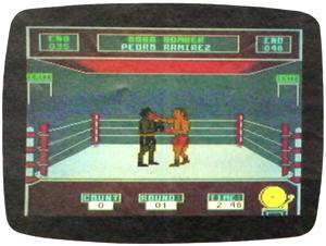 Den Ring-Kontrahenten kann man sich auch heraussuchen: Sie können gegen die beiden vor oder den direkt hinter Ihnen plazierten Boxer der Weltrangliste antreten. Bevor der große Kampf schließlich stattfindet, schicken Sie Ihren Boxer noch ins Trainingslager, um ihn auf den nächsten Gegner vorzubereiten. Der Kampf selber präsentiert sich in einer recht ansprechenden Grafik und geht — wie bei den Profis — über maximal zwölf Runden, die je drei Minuten dauern. Sechs Schlag-und zwei Abwehr-Techniken sorgen für Variantenreichtum. Nach jeder Runde wird ein Zwischenstand eingeblendet, dem man den Zustand der Kämpfer und den aktuellen Punktestand entnehmen kann.