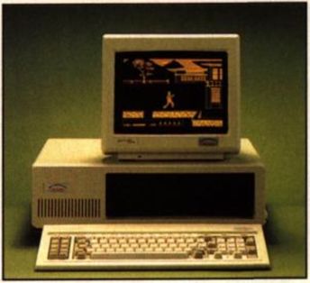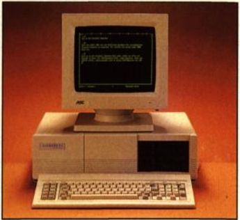 Zu dem System wird ein 9-Zoll-Monitor mitgeliefert Neben der Multi-I/O-Karte ist außerdem eine Farbgrafikkarte und batteriegepufferte, hardwaremäßige Uhr eingebaut. Selbstverständlich ist dieses System auch in verschiedenen abgespeckten Versionen (beispielsweise mit einem Laufwerk für 2100 Mark) erhältlich. In dem Gehäuse ist bereits Platz für eine Harddisk freigehalten, einem späteren Nachrüsten steht nichts im Weg. (zu)