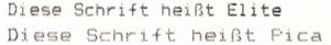 Ein Matrixdrucker bietet eine Reihe von großen Vorteilen: Unterstreichung, Fettdruck, Kursivschrift, komprimierter Druck, doppelte Höhe, doppelte Breite, Negativdruck, etc., die ein Typenrad-Drucker wegen seines starren Zeichensatzes nicht erreichen kann. Das sind natürlich Eigenschaften, auf die man bei der Kauf-Entscheidung besonderen Wert legen muß. Daneben können verschiedene Drucker auch mehrere unterschiedliche Schrifttypen drucken (Pica, Elite, Italic, Gothic, Quadro, Prestige, etc). Diese Extras heben meist den Preis eines Druckers an. Man sollte sich überlegen, ob nicht eine Standard-Schriftart mit Pica und Elite (siehe Bild 2) genügt.