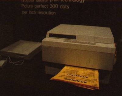 Der angekündigte Laserdrucker zum Discount-Preis gab auch sein Debüt. Er wird durch den Atari ST gesteuert und ist ohne diesen nicht lauffähig. Ataris Entwickler gingen neue Wege und lagerten die in jedem Laserdrucker enthaltene 68000-CPU, sowie die nötige RAM-Kapazität zur Bildaufbereitung einfach aus. Diese Arbeit übernimmt jetzt der ST. Daraus resultiert ein großer Vorteil, denn bei einer bisherigen Kombination aus ST und Laserdrucker dauerte es zirka acht Minuten bis das gedruckte Blatt vorlag. Diese Zeit verringert sich jetzt wesentlich. Bereits nach zirka 30 Sekunden beginnt der Druckvorgang. Beinhaltet der ST den Blitter, verkürzt sich die Zeit auf maximal 10 Sekunden.