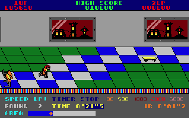 Manche Kacheln erweisen sich als regelrechte Fallen: Da gibt es Wasserlöcher und Tretminen, die den LĂ€ufer jedesmal fĂŒr eine Sekunde auĂer Gefecht setzen. Ăhnliches passiert, wenn der LĂ€ufer ĂŒber die auf manchen Feldern stehenden HĂŒrden stolpert. AuĂerdem droht der Spieler von gigantischen roten Cola-Dosen ĂŒberrollt zu werden. Bonuspunkte kann man durch das Wegkicken von blauen Dosen erhalten. Springt man auf eine Dose drauf, wird die Uhr fĂŒr zwei Sekunden angehalten.