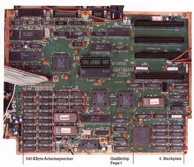 Bild 2. Die Hauptplatine der Systemeinheit des PC 1640 mit mehr Speicher, dem Grafik-Chip Pega-1 und einem zusÀtzlichen, vierten Steckplatz