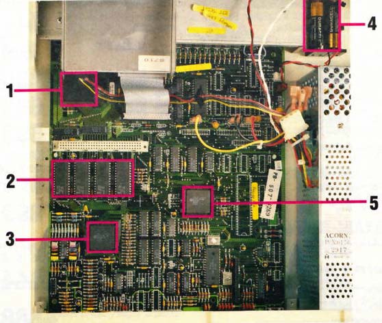 2: Das Betriebssystem »Arthur« ist mit dem Basic im ROM 3 + 5: Zwei weitere Custom-Chips übernehmen Grafik und Speicherzugriffe