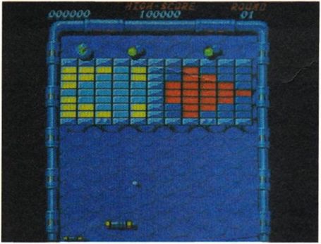 Farbenfroh geht es bei Arkanoid II zu. Hier gelang die Umsetzung wesentlich besser. Alle Eigenschaften des Automaten wurden übernommen Durch den hochkantigen Bildschirm-Aufbau kommt sogar das Spielgefühl etwas besser herüber als beim C 64. Störend ist die manchmal recht schräge Musik, die man aber jederzeit abdrehen kann. Allerdings wurden die Joystick- und Tastatur-Abfragen recht schlampig programmiert. Gerade Anfänger werden viel Mühe haben, den Ball ab und zu mal zu treffen. Ware dies den Programmierern besser gelungen, wäre Arkanoid II eine fast perfekte Umsetzung.