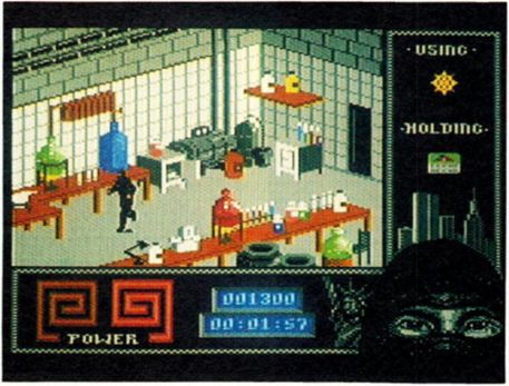 Armakuni muß sich durch sechs verschiedene Levels. die einzeln geladen werden, hindurchschlagen. Darunter sind der Central-Park, ein übles New Yorker Viertel, die Kanalisation, ein Bürogebäude und schließlich das Schloß von Kunitoki. Eine Vielzahl von unterschiedlichen Gegnern, vom Polizisten bis zum punkigen Schläger-Typ, wollen den Ninja behindern und verwickeln ihn in fernöstliche Kämpfe. Aber Sie müssen auch eine Menge von Puzzles lösen, um weiterzukommen. Bestimmte Gegenstände müssen mitgenommen und benutzt werden, es gibt auch versteckte Schalter und bewegliche Hindernisse.