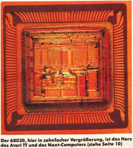 Der 68030 - ein echter 32-Bit-Prozessor — ist die bisher leistungsstärkste CPU aus der Motorola 68000er-Serie. Im Gegensatz zum MC 68000, der im Amiga und Atari ST verwendet wird, verarbeitet der 68030 nicht 16-Bit, sondern 32-Bit-Daten, was sich beim Kopieren von Speicherinhalten und beim Rechnen bemerkbar macht.