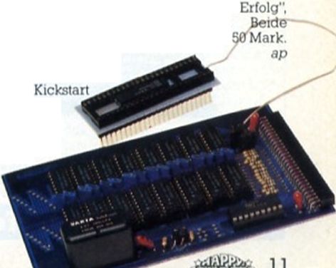 Weiteres Roßmöller-Produkt: eine Kickstart-Umschaltplatine für gleichzeitig drei Betriebssysteme. Sie umfaßt zwei 40polige ROM-Bausteine (Commodore-Originale) und ein Kickstart auf vier 27512-EPROMS verteilt zum Selberprogrammieren und -brennen. Preis, knapp 60 Mark.
