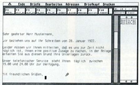 Einen Brief mit dem Computer zu schreiben ist eine Kunst: Da müssen Druckvorlagen eingestellt, Adressen mühsam abgetippt und Formate jedesmal neu definiert werden. Sobald man beispielsweise einen Brief schreiben will, der in einen Sichtfenster-Umschlag gehört, wird die Sache kompliziert. Um die Adresse an den richtigen Platz zu bringen, muß man oft nach Gefühl vorgehen; oft kann man den Brief erst nach mehreren Probeausdrucken umschlaggerecht formatieren. Eine Woche später, wenn man einen weiteren Brief an die gleiche Adresse schicken will, wiederholt sich der gesamte Vorgang. Wen wundert's da. daß viele Computerbesitzer für ihre tägliche Post lieber wieder zur Schreibmaschine greifen und den Computer nur noch zum Schreiben von langen Texten und Referaten benutzen.