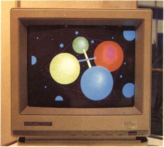 Einen der meistbeachteten Stände bot Omega-Datentechnik. Aus gutem Grund: »ColorCAD« ist eine schnelle Grafikerweiterung mit einer Geschwindigkeit von 4 Millionen Pixel pro Sekunde. Sie bietet eine frei programmierbare Auflösung von 1024 x 512.820 x 512 oder 512 x 512 Pixel bei 256 festgelegten Farben gleichzeitig (Bild 1). 60 Grafikbefehle bietet die Hardware und für alle wichtigen Programmiersprachen sind Treiber angepaßt. Doch ColorCAD ist erst der Beginn eines großen Projekts. Dazu Ulrich Breuer, einer der Entwickler: »ColorCAD kommt in vier Versionen. In der nächst höheren Stufe wird die Palette auf 256000 Farben erhöht. Außerdem haben wir ein System in Entwicklung, das 65000 Farben gleichzeitig auf den Monitor bringt Hierzu wird es einen Echtzeit-Digitalisierer und ein Genlock-Interface geben. Noch in der Planung ist eine Erweiterung mit einer Milliarde Farben.«