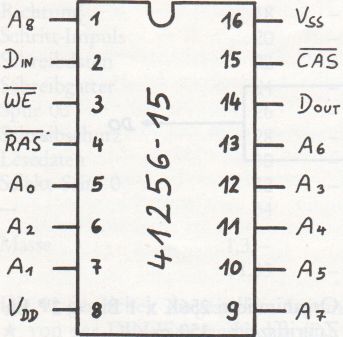 Um ein einzelnes Bit aus diesen 256K Bit anzusprechen, benötigt man neun Adreßleitungen, d. h. es müßten eigentlich 18 Adreßleitungen sein, da 218 = 256K ergibt. Aus technischen Gründen und wegen der Gehäusegröße der Chips sind jedoch nur die Hälfte der Adreßleitungen, eben neun, herausgeführt worden (siehe Anschlußbelegung des RAMs). Um dennoch 256K adressieren zu können sind die Adreßleitungen der RAM-Bausteine „gemultiplext“. Was das bedeutet ist im folgenden erklärt.