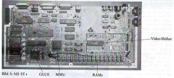 Falls Sie nun einen 520 ST oder einen 260 ST besitzen und ihn auf ein Megabyte Arbeitsspeicher erweitern wollen, dann sollten sie die folgenden Zeilen aufmerksam lesen. Doch bevor wir die Aufrüstung zum Mega ATARI schrittweise erklären, eine Warnung: Alle anderen Umbau- oder Bastelarbeiten in diesem Heft sind im Vergleich zu der folgenden ein Kinderspiel. Sie sollten deshalb nur von erfahrenen Elektronikbastlern vorgenommen werden. Außerdem erlischt eine noch gültige Garantie durch den Eingriff in den Rechner. Funktioniert der Rechner später nicht mehr, muß die eventuell nötige Reparatur durch einen Vertragshändler, selbst bezahlt werden. Doch nun genug der ernsten Worte. Zum Glück hatten die Entwickler der MMU (Memory Manager Unit, Speicher Verwaltungs Baustein) die Möglichkeit einer weiteren 512 KByte RAM-Bank vorgesehen, so daß die benötigten Signale bereits vorhanden sind. Dies sind RAS 1, CAS 1 L und CAS 1 H. Theoretisch besteht sogar die Möglichkeit den internen Speicher auf 4 MByte aufzurüsten, da die MMU ebenfalls eine zehnte Adressierung zur Adressierung von 1 MBit-Chips bereit hält. Diese Chips sind zur Zeit jedoch kaum erhältlich und falls doch, zu kaum bezahlbaren Preisen.