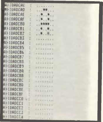 Neben den üblichen Grundfunktionen (siehe Tabelle 1) eines Monitors bietet FLOYD noch eine Reihe von zusätzlichen Möglichkeiten. So lassen sich unter anderem Bitmuster editieren, wie unser Beispiel in Bild 1 zeigt. Da auf dem Bildschirm maximal acht Bytes als Bitmuster nebeneinander Platz haben, kann man bei breiteren Bildern mit einem zusätzlichen Offset arbeiten. Durch diesen Offset wird der Edit-Befehl so beeinflußt, daß zu der zuletzt dargestellten Adresse der eingegebene Offsetwert dazu addiert und als neue Adresse benutzt wird.