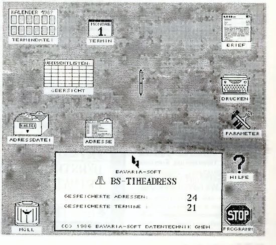 Die Softwarefirma BAVARIA SOFT aus Bayern hatte sich als neuer Softwareanbieter für den ATARI ST schon mit ihrem ersten Produkt BS-HANDEL auf dem ST-Markt etabliert. Mit Spannung erwartete man nun das bereits angekündigte Softwarepaket BS-TIMEADRESS.
