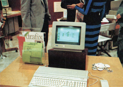 Auf meinem Messerundgang fiel mir in der Westhalle ein leistungsstarkes CAD Paket auf, das 1 : 1 vom IBM PC übernommen wurde. Der Drafix Source wurde auf dem ST neu compiliert und lief, bis auf geringfügige Änderungen in der Bildschirmausgabe. Drafix wird zunächst nur für den monochrom Monitor angeboten, weil ein CAD Paket dieses Umfangs nur mit dieser Auflösung arbeiten kann. Das komplette Paket soll ab Januar verfügbar sein und über Knupe, Dortmund vertrieben werden. Der Preis von unter DM 1000,-ist schon erstaunlich. Das CAD Paket wurde sowohl auf IBM AT-03 als auch auf dem Atari 1040 gezeigt. Interessant war, daß der Atari bei der Berechnung fast doppelt so schnell war wie der AT.