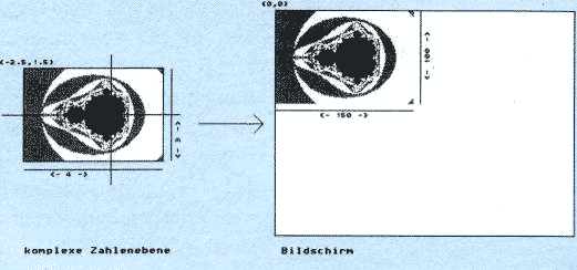 Die Beispiele sind übrigens in GFA-Basic geschrieben, allerdings sind die Routinen so allgemein gehalten, daß man auch jede andere Programmiersprache verwenden kann. Geschwindigkeit ist jedoch Trumpf, da für ein Bild viele tausend Berechnungen durchgeführt werden müssen, was bei ausreichender Rechengenauigkeit mitunter Stunden dauern kann.