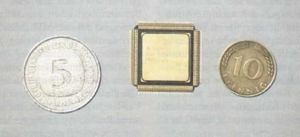 Größenvergleich: Der hochintegrierte Blitterchip für den Transputer