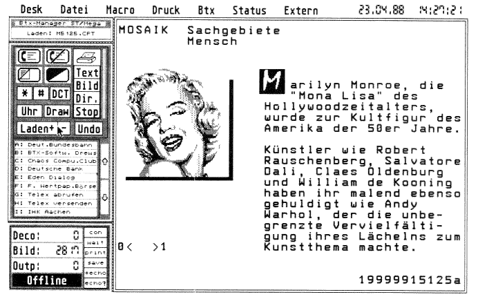 Bild 2: Auch Kulturelles lĂ€Ăt sich im Btx-Netz finden