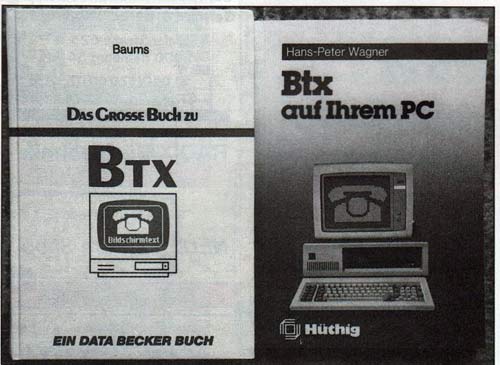 Der Verbindung von Btx und Personalcomputer hat sich Hans-Peter Wagner angenommen, denn hier gibt es noch potentielle Nutzer, die mit minimalem Aufwand ihren PC Btx-tauglich machen können. âBtx auf ihrem PCâ (Alfred HĂŒthig Verlag, 226 S.) ist jedoch in vielen FĂ€llen schon wieder veraltet, weil aus dem Jahre 1986. Zudem werden viele Kombinationen, wie etwa PC als Vorrechner, PC mit dem GroĂrechner, PC als externer Rechner etc. aufgezeigt, die nur ganz wenige nutzen können. DafĂŒr entschĂ€digt ein Anhang mit Herstelleradressen und deren Angeboten auf diesem Markt.
