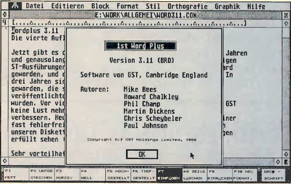 Jetzt gibt es den ATARI ST schon seit ungefähr dreieinhalb Jahren und genausolang das “erste Wort”. Am Anfang, als es zu einigen ST-Ausführungen zum Lieferumfang gehörte, ist es zum Standard geworden, und es konnte seine Stellung bis heute bewahren. In drei Jahren sind aber einige Forderungen der Anwender laut geworden, die schon in der Version 2.02, der letzten veröffentlichten Version, nur sehr spärlich berücksichtigt wurden. Vor vier Wochen haben sich noch einige gefragt, ob GST keine Lust mehr hat, seinen Standard zu pflegen und zu verbessern. Heute haben wir die deutsche Version 3.11 in einer fast fehlerfreien Version (ATARI sagt Gammaversion dazu) in unserem Diskettenschacht und werden gleich unsere Forderungen erfüllt sehen (oder nicht?).