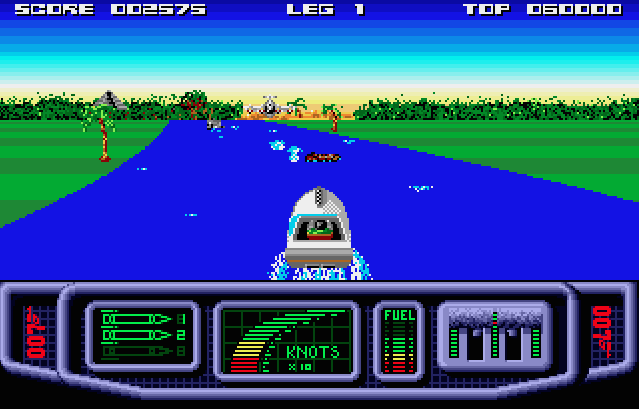 Das Durchfahren von Tunneln und Schleusen macht die Motorbootfahrt sehr realistisch und vor allem schwierig. Damit sich der Spieler an sein Motorboot und die Verteidigungsanlagen gewöhnen kann, hat Domark an drei Trainingsmissionen gedacht. In der eigentlichen Mission muß man die Wasserstraße so weit wie möglich durchfahren, um am Ende des Flusses auf die heroinverarbeitenden Fabriken von Mr. Big zu stoßen, die Sie mit einem gezielten Raketenschuß zerstören müssen. Fazit: “Leben und Sterben lassen” ist ein erstklassiges Game mit hervorragender Grafik, einem fetzigen Titelsound und einem süchtig machenden Spielprinzip.