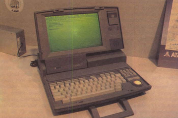 Schon im Jahr 1987 wurde erwähnt, daß ATARI oder eine Firma, die von ATARI beauftragt wurde, mit der Konstruktion eines ST-Laptops beschäftigt war. Sogar Fotos wurden gezeigt, aber der kleine portable ST kam nicht. Auf der CeBIT '88 wurde über dieses Thema gar nicht mehr gesprochen, so daß man das Gefühl bekam, daß er nicht mehr kommen würde. Dieses Jahr wurde er - im Gegensatz zur vorherigen Comdex in Las Vegas - dem Publikum als Fertigprodukt vorgestellt.