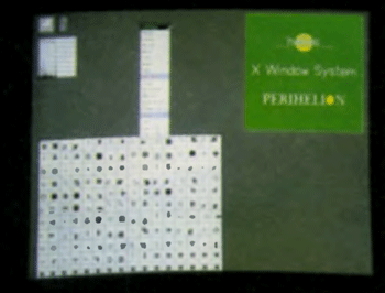 Insgesamt 21 Prozesse laufen zum Zeitpunkt dieses Fotos gleichzeitig. Sie können die Namen der Prozesse im C-Shellfenster oben in der Mitte sehen; das Shell-Kommando PS gibt diese Liste für den aktuellen Prozessor aus. Die in diesem Bild verwendete Bildschirmauflösung ist 1024*768 Pixel, bei 256 Farben aus einer Palette von 16.7 Millionen.