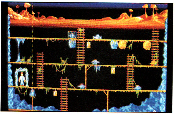 Bei einem Ausflug in die Vergangenheit macht der Zeitreisende Cronos eine erstaunliche Entdeckung: Vor 150 Millionen Jahren raffen Erdbeben fast alle Saurierbabies dahin. Um ein vorzeitiges Aussterben der Urviecher zu verhindern, beginnt der besorgte Wissenschaftler mit der Evakuierung. In jedem der 50 Levels liegen zahlreiche Sauriereier verstreut, die aufgenommen und zum Teleporter transportiert werden mĂŒssen. Junge Reptilien gilt es durch einfaches Ăberspringen einzufangen, was deren Eltern naheliegenderweise gegen den Strich geht. Eilends auf den Plattformen ausgesetzte MĂ€use halten die rachedurstigen UngetĂŒme eine Zeit lang in Schach, an der richtigen Stelle plazierte Felsbrocken killen sie gar. Zu Beginn muĂ sich Cronos mit drei Eiern pro Teleporter-Gang begnĂŒgen. Das reichhaltige Extra-Arsenal beinhaltet zum GlĂŒck eine Vorratsbatterie, die lĂ€stiges Hin- und Herlaufen ĂŒberflĂŒssig macht. Ebenfalls von Nutzen sind Schutzschilde. Waffen und AbkĂŒrzungen in höhere Spielstufen. Sollten jetzt immer noch Probleme auftreten, hat Cronosâ Freund Jeff die Möglichkeit, ihm unter die Arme zu greifen und in einem der drei Bonuslevels mit auf Punktejagd zu gehen. Schon die an den Haaren herbeigezogene, mit Tippfehlern ĂŒbersĂ€hte Hintergrundgeschichte dieses Geschicklichkeitsspiels aus deutschen Landen lĂ€Ăt nichts Gutes vermuten. Das Schauspiel, das sich dem Betrachter allerdings nach dem Laden auf dem Bildschirm bietet, ist mehr als eine Zumutung. Das mĂ€Ăig animierte Helden-Sprite lĂ€uft, springt und klettert durch eine AnhĂ€ufung lieblos zusammengeschusterter Bildschirme. Beim pixelgenauen Springen ĂŒber die bedenklichen kleinen Monster steht die Kollisionsabfrage beharrlich auf seiten des Computers. Solcherlei Unfairness stört nicht allzu sehr, denn besonders lange hĂ€lt man es sowieso nicht vor dem Monitor aus.